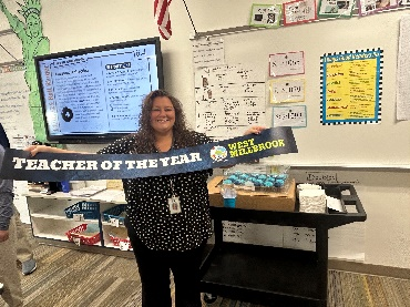 ¡Felicidades a Kelly Craft, nuestra Maestra del Año 2025-26 de la Escuela Intermedia West Millbrook Magnet! Este es el 19.º año de la Sra. Craft en West Millbrook, donde ha impartido clases de Intervención y apoyo, intervención en lectura y ahora se desempeña como coordinadora de intervención escolar.