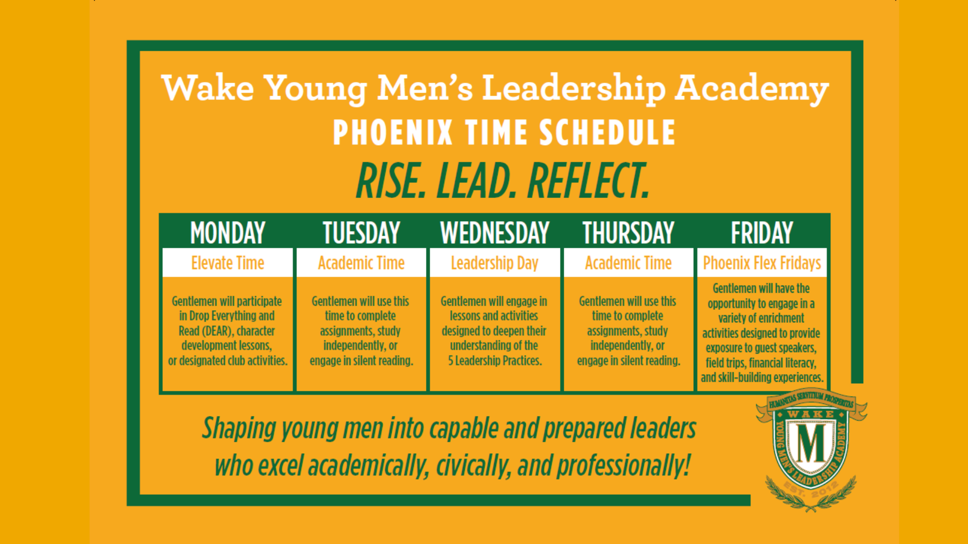 This is also a time for students to gather in smaller groups and develop supportive bonds and relationships with teachers and each other and work towards a brotherhood.