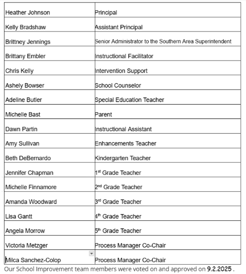 Our School Improvement team members were voted on and approved on 9.2.2025 .
