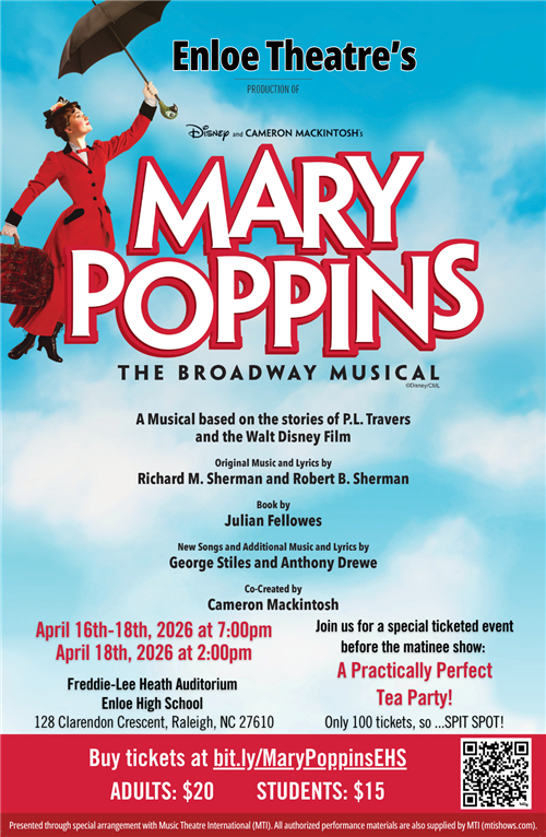 Tickets are on sale now for Enloe's Spring Musical "Mary Poppins." Click here for showtimes and where to purchase tickets.