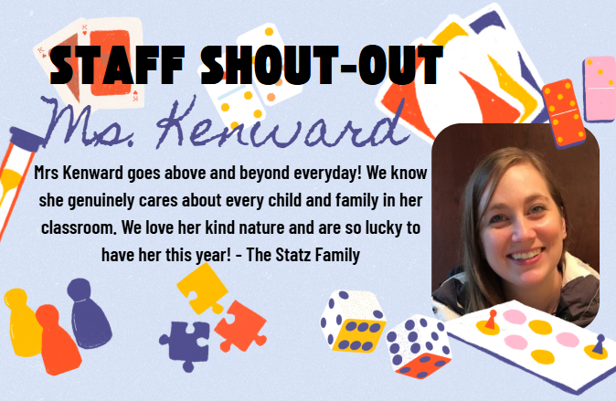 Thank you, Statz Family, for shouting out Ms. Kenward, one of our Otterly Amazing Track 2, First Grade Teachers!